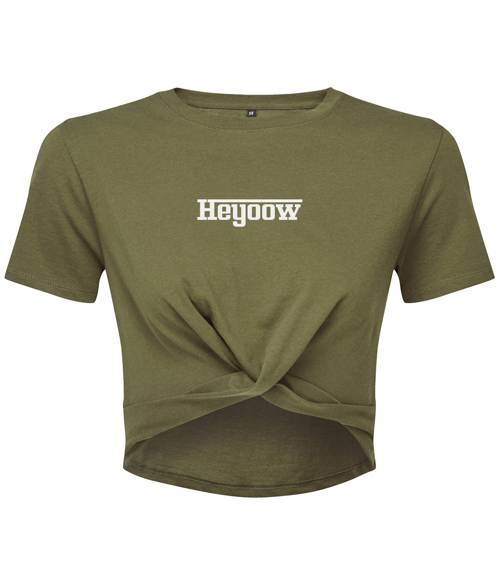 Strada ● Twist Crop Top ● Olive - White